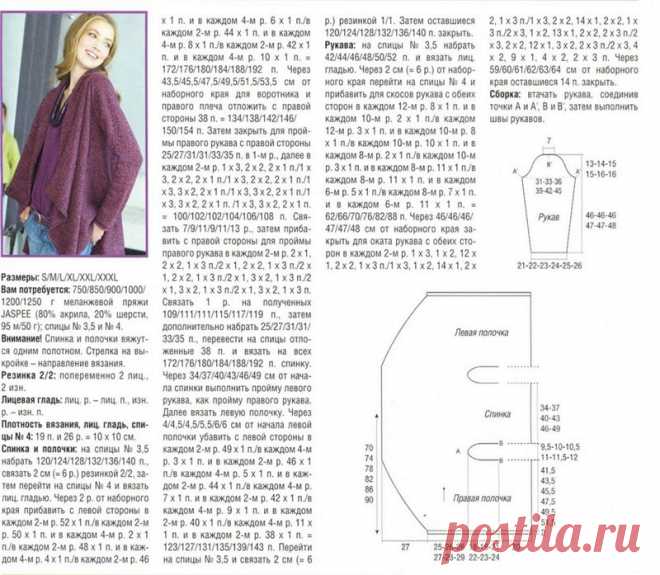 пряжа 2 (70% мохера, 30% шелка; ок. 210 м/25 г) — ок. 300 (350) 400 (450) г голубой; круговые спицы №6 длиной 80, 100 и 120 cм; чулочные спицы №6; 5 синих пуговиц диаметром п...