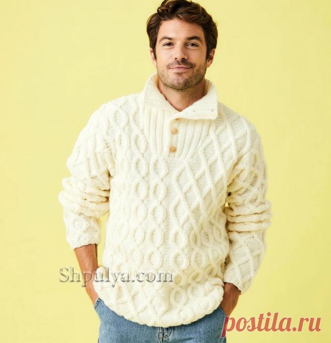 Пуловер с застежкой поло узорами из «Кос» — Shpulya.com - схемы с описанием для вязания спицами и крючком мастер классы, узоры, модели с фото и видео на сайте