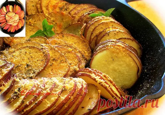 Картошку разрезать вдоль, положить на смазанную маслом форму. Намазываем на кажд...