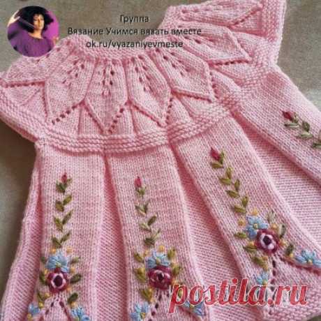 Вязание спицами. Джемпер с ажурной кокеткой для девочки