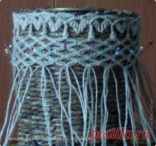 Поделки для интерьера. Столик из банок и кашпо из ниток.