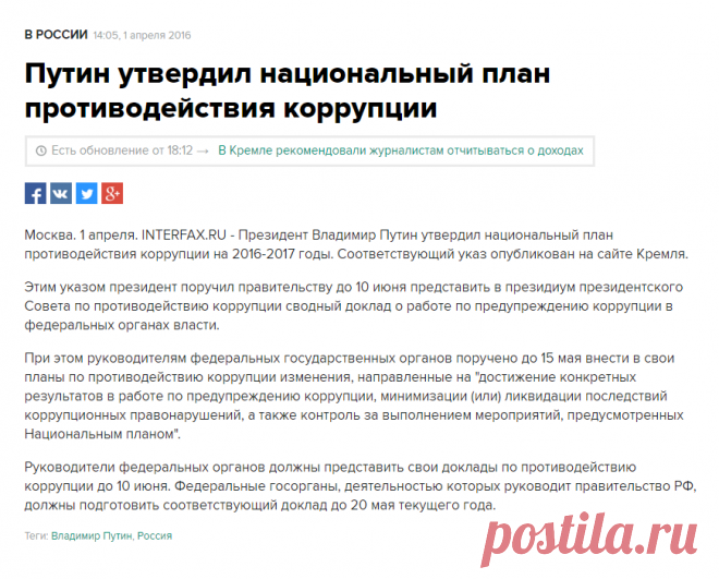 Путин утвердил национальный план противодействия коррупции 20160408AL_TBA!!!