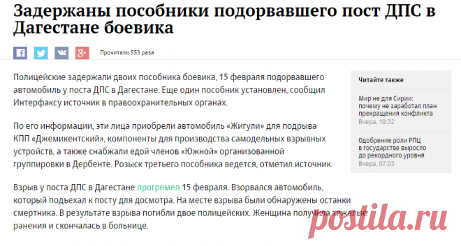 Задержаны пособники подорвавшего пост ДПС в Дагестане боевика :: Политика :: РБК