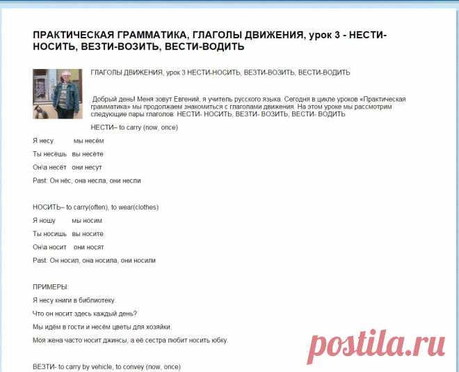 ПРАКТИЧЕСКАЯ ГРАММАТИКА, ГЛАГОЛЫ ДВИЖЕНИЯ, урок 3 - НЕСТИ-НОСИТЬ, ВЕЗТИ-ВОЗИТЬ, ВЕСТИ-ВОДИТЬ