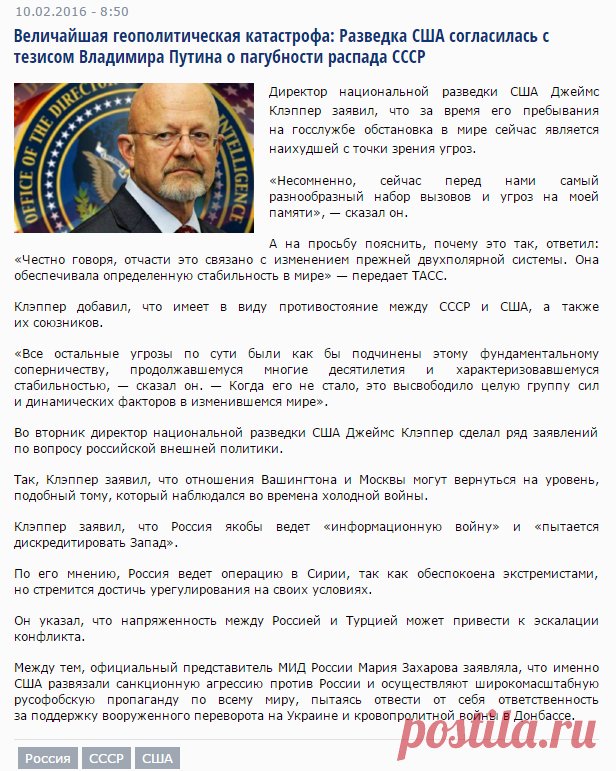 Величайшая геополитическая катастрофа: Разведка США согласилась с тезисом Владимира Путина о пагубности распада СССР | Продолжение проекта "Русская Весна"