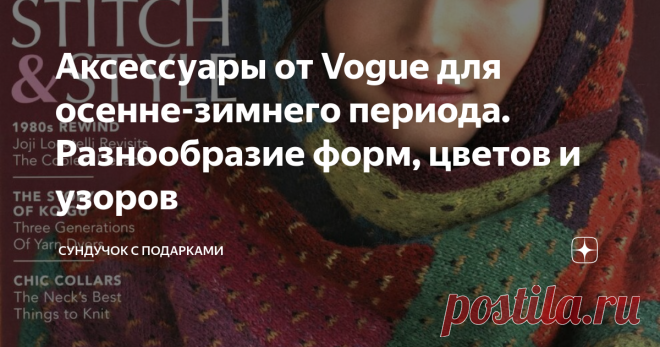 Аксессуары от Vogue для осенне-зимнего периода. Разнообразие форм, цветов и узоров Осенне-зимний период — время для вязания аксессуаров. Погода стала холодной, нам хочется утеплиться. Лучше всего это задачу решают аксессуары: шапки, шарфы, шали, палантины, носки, варежки. Вязаные аксессуары способны украсить и разнообразить наш гардероб. Один и тот же свитер в разных ситуациях можно одеть вместе с шалью, шарфом, шапкой или митенками. Я считаю, что нужно иметь много разных ...