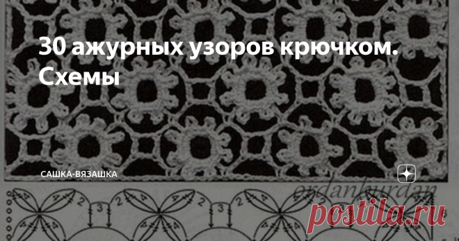Очередная подборка для любителей вязать крючком (20 узоров и схем) Всем привет! Меня зовут Юлия и я - автор проекта "Факультет рукоделия". В очередной раз хочу поделиться с Вами идеями узоров для вязания с просторов Интернета.