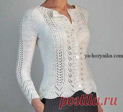 Кардиган с ажурными планками спицами с описанием. Вязаный спицами кардиган