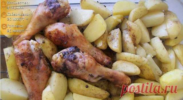 Куриная голень запеченная с картошкой в духовке