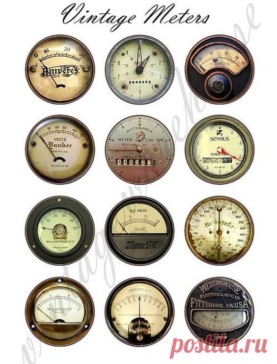 (1) Vintage INDUSTRIAL METERS - steampunk dials,gauges and meters Digital Collage Sheet - craft circle download 1,1.5,2 in, 16mm