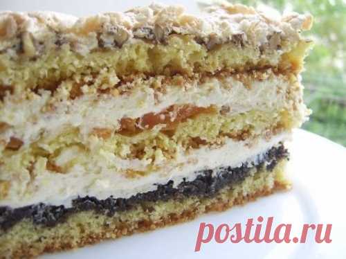 Торт "Люби меня" Ингредиенты: Тесто: 250 гр маргарины 1 ст сахара 6 желтков 4 ст л сметаны 500 гр муки 2 ст л разрехлителя На первий корж: 1 ст орехов На второй корж: 200 гр кураги На третий корж: 1 ст мака 1 ст сахара 100 гр масла 2 яйца 1 ст л муки 1 ч л разрехлителя Для поливки: 6 белков 1 ст сахара Форма 30/40. Стакан - 250гр. Приготовление: Маргарин растереть с мукой. Добавить сметану, сахар, желтки, разрехлитель и замесить тесто. разделить на три части, разложить тесто у формы.…
