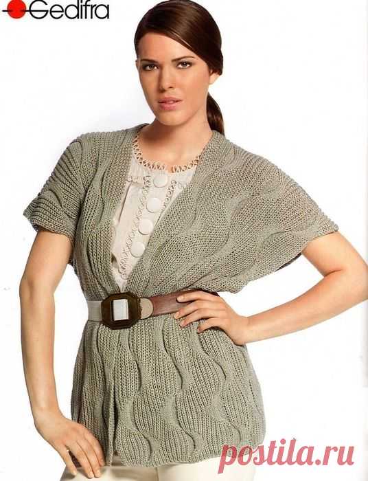 Интересное решение: вяжем удивительный жакетик-пончо спицами