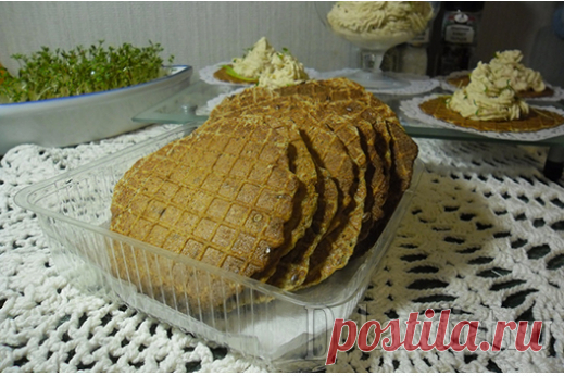 Выкладывать в горячую вафельницу (в серединку) по 1 ч. л. без горки. Получатся небольшие круглые вафельки-хлебцы. А нам только этого и надо.