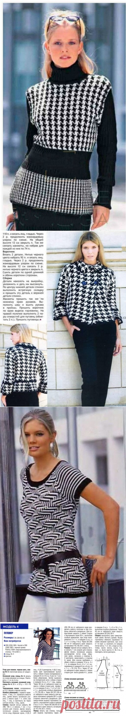 Черно- белые жакеты, свитера, пуловеры, сумки. Узор "гусиные лапки" | Волшебные спицы | Яндекс Дзен