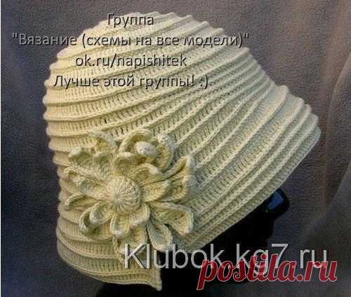 Шикарный берет крючком с цветком. Описание, схемы вязания