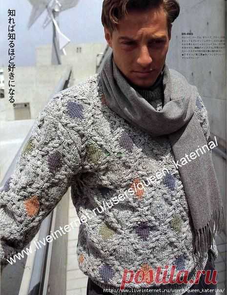 МУЖСКОЙ ПУЛОВЕР: АРАНЫ С ЦВЕТНЫМИ РОМБАМИ