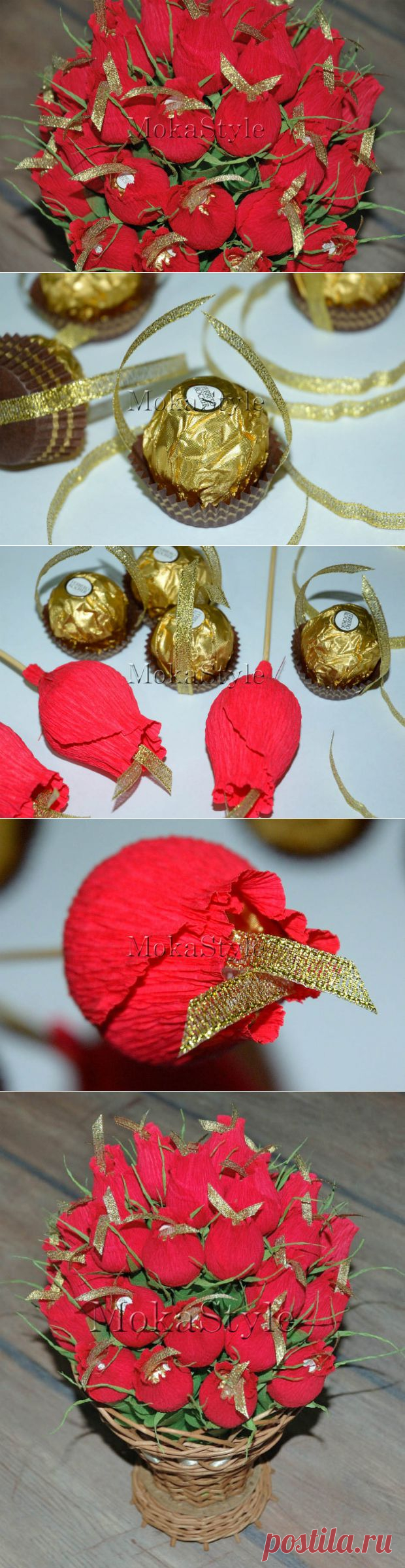 Мастера рукоделия - рукоделие для дома. Бесплатные мастер-классы, фото и видео уроки - Мастер-класс по букетам из конфет: Бутоны роз