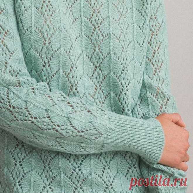 Бледно-зеленый ажурный пуловер | Вязание спицами и крючком🧶 Настя Бодак | Дзен