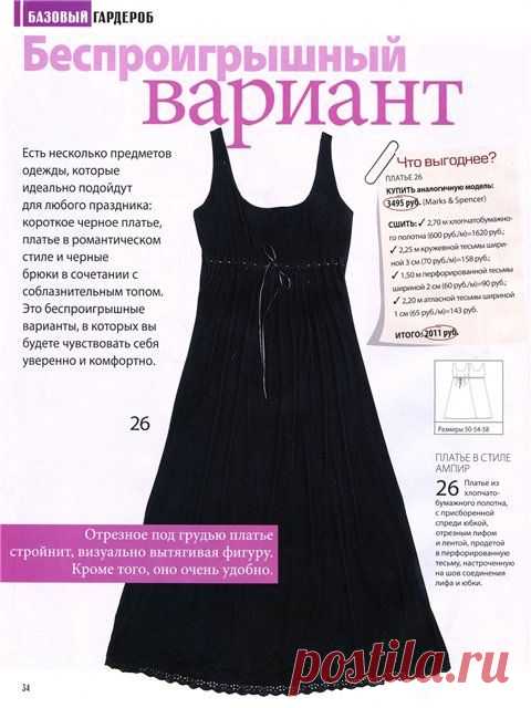 Такое платье нужно всем! Выкройка платья "Ева" (все размеры).