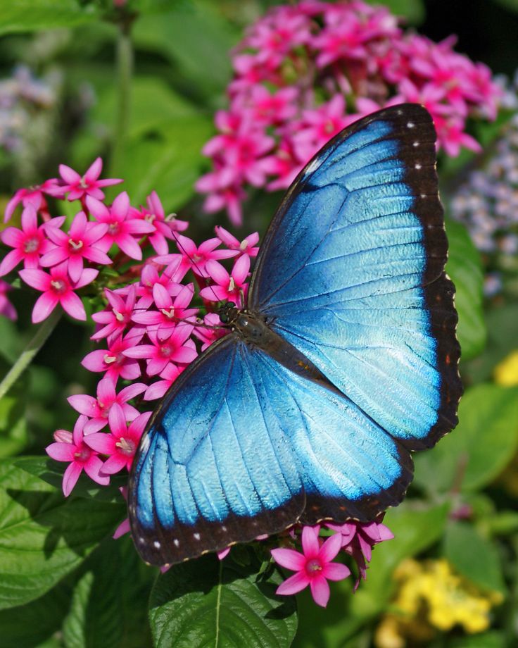 Astonishing Blue Morpho Butterfly Resting On Flowers!