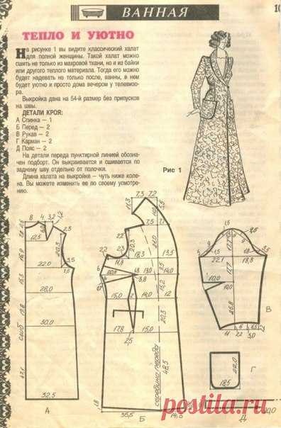 Из старых журналов... Выкройка банного халата 54 размера (российского) #выкройки #моделирование