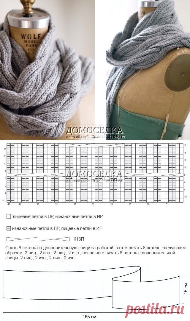 Шарф из кос спицами | ДОМОСЕДКА