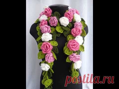 Как связать шарф "Розы".Процесс вязания крючком.Урок вязания.Crochet scarf.