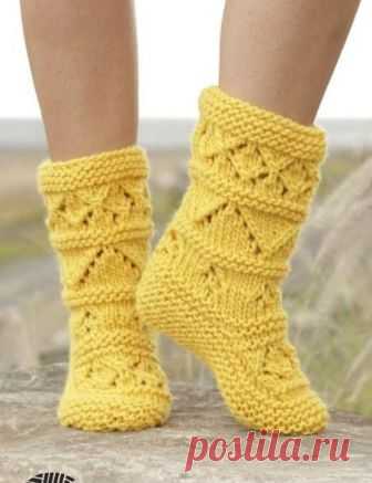 Ажурные носки "Сапожки" от Drops Design, вязаные спицами В семействе домашних тапочек, вязаных разными инструментами, попадаются очень интересные экземпляры. К их числу относятся, например, мягкие ажурные сапожки. Они предназначены для внутренних помещений дома, для напольного покрытия или паркета, для половиков или ковров. Но при желании можно снабдить их подходящей подошвой, и тогда ничто не помешает Вам выйти в них на улицу – на зависть соседям.