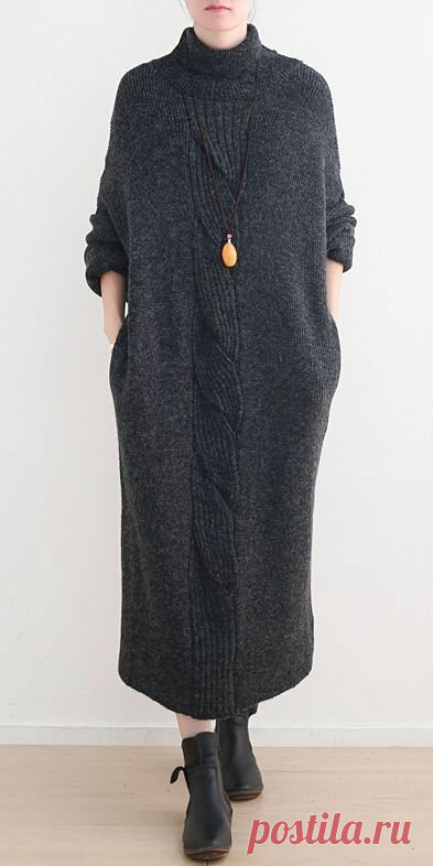 Вязаное платье оверсайз с рукавами летучая мышь спицами - стильно и просто! Выкройка и описание!