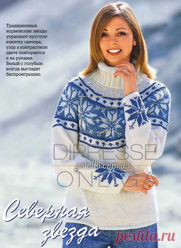 Жаккард. Свитер со снежинками. Описание, схемы вязания