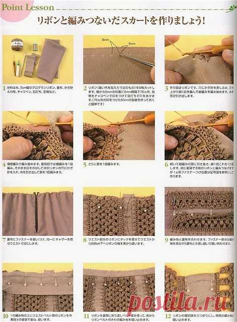 Вязание крючком + ткань. (Идеи из интернета) / Вязание крючком / Женская одежда крючком. Схемы.
