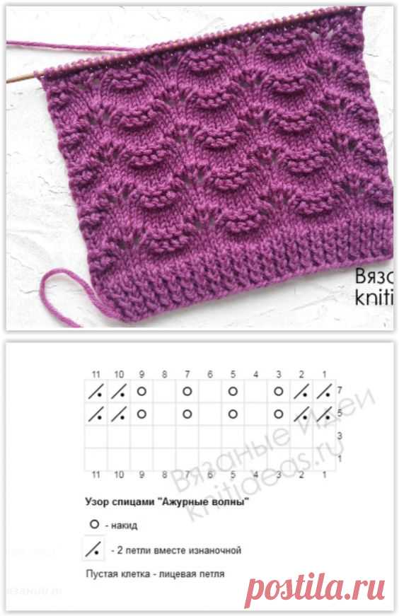 №34 Ажур - волнистый узор спицами, схема | АЖУР - схемы узоров