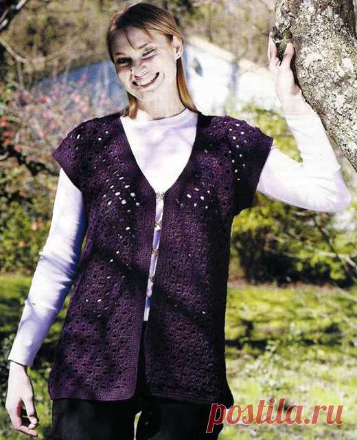 Вяжем фиолетовый жилет Лилла для полных дам крючком – схема и описание на 52-54 размеры для начинающих рукодельниц