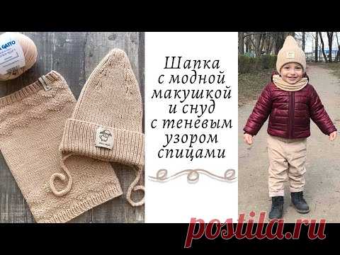Детская ШАПКА с модной макушкой и СНУД с теневым узором спицами || Очень подробный мастер-класс ||