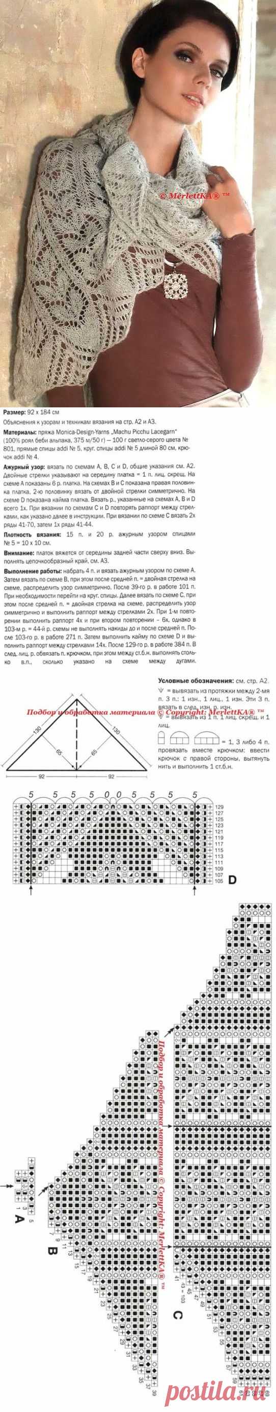 Вязание спицами - пуловер со вставкой и ажурная шаль.