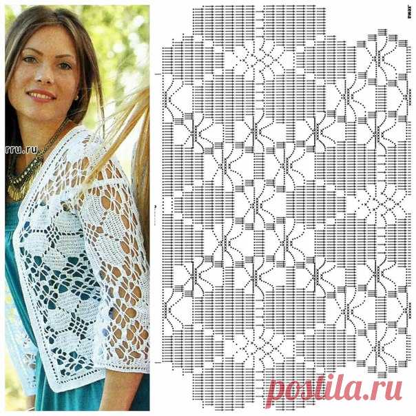 Белый летний жакет филейным вязанием.MAGIA CROCHET 112