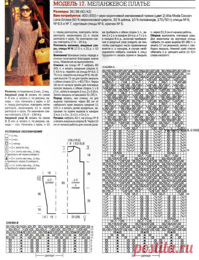 Меланжевое платье спицами с описанием. Схема и описание вязания платья спицами