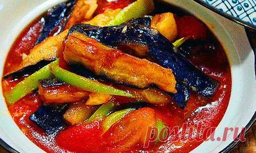 #Китай#кухня#баклажан#помидор Жареные баклажаны с помидором Ингредиенты: баклажан, помидор, перец, чеснок, крахмал, кетчуп, соль, растительное масло и рисовое вино.