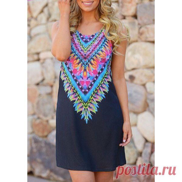 Wholesale Ethnic Style Scoop Neck Sleeveless Printed A-Line Tribal Dress For Women (BLACK,XL), Summer Dresses - Rosewholesale.com