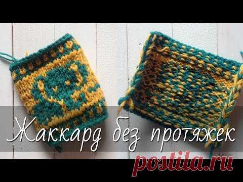 Жаккардовые узоры БЕЗ ПРОТЯЖЕК в лицевых и изнаночных рядах.