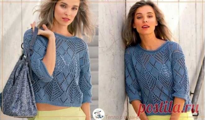 Джемпер с круглой ажурной кокеткой (Вязание спицами) – Журнал Вдохновение Рукодельницы