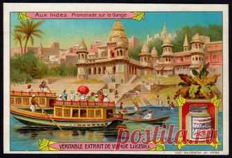 Liebig Tradecard S853 - On the Ganges Liebig's Beef Extract "In India" Belgian issue, 1906.