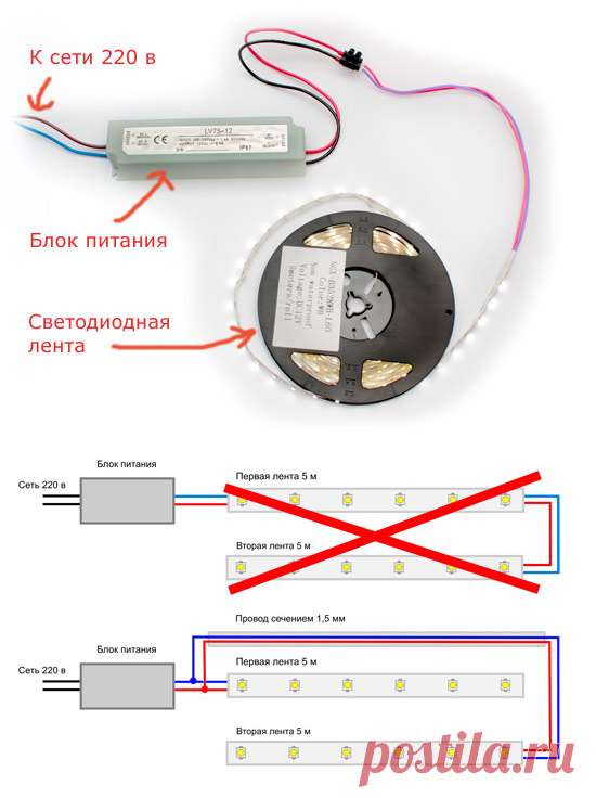 Схема подключения светодиодной ленты - подробная инструкция по подключению светодиодных лент