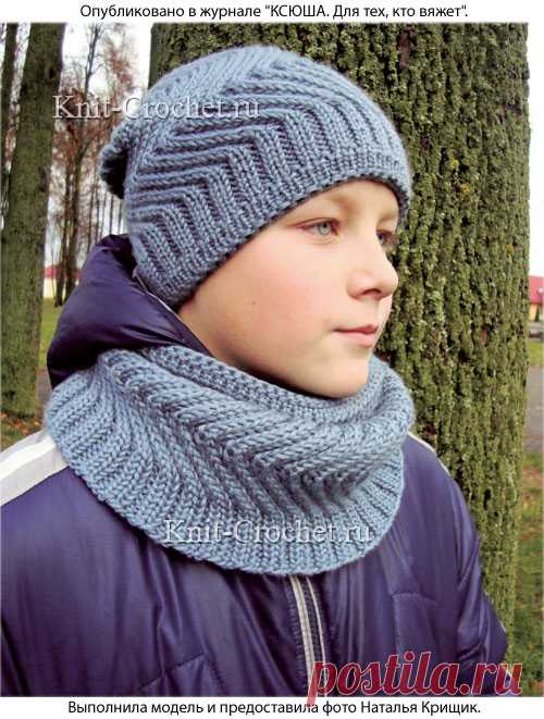 Снуд и шапочка «Жемчужная ночь» на спицах. - Шали, шарфики, шапочки спицами - Вязание спицами - Каталог статей - Вязание спицами и крючком