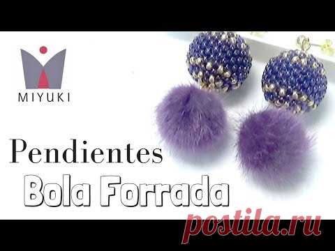 Tutorial Pendientes con Bola Forrada de Miyuki y Pompon