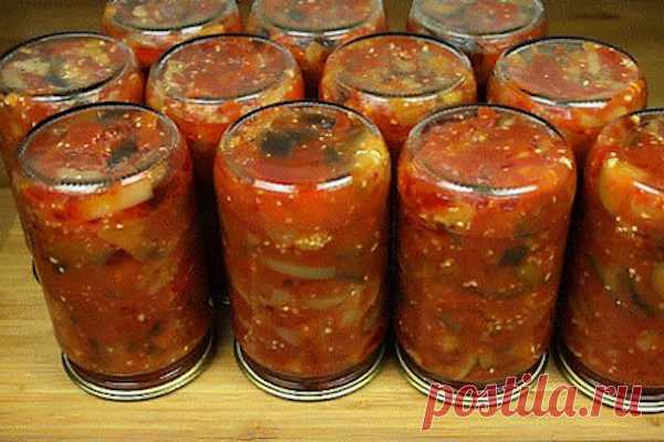 Уложить в банку специи, помидоры, перец и между ними виноград (лучше светлый), разобрав его на маленькие кисточки по несколько ягод. Залить на 20 минут кипятком. Слитую воду вскипятить, добавить 2 ложки сахара и 1ложку соли и залить в банку. Закатать. Можно укутать.