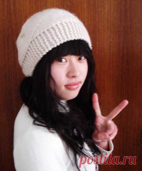Модная вязаная спицами женская шапка из китайского журнала | Что на голову?
