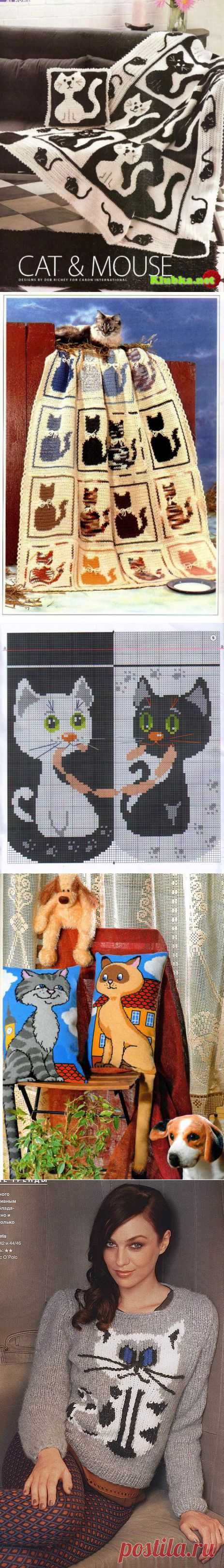 Вяжем крючком детский плед или вышиваем подушку _ Схемы узоров с котятами _ Пост пополняется в комментариях