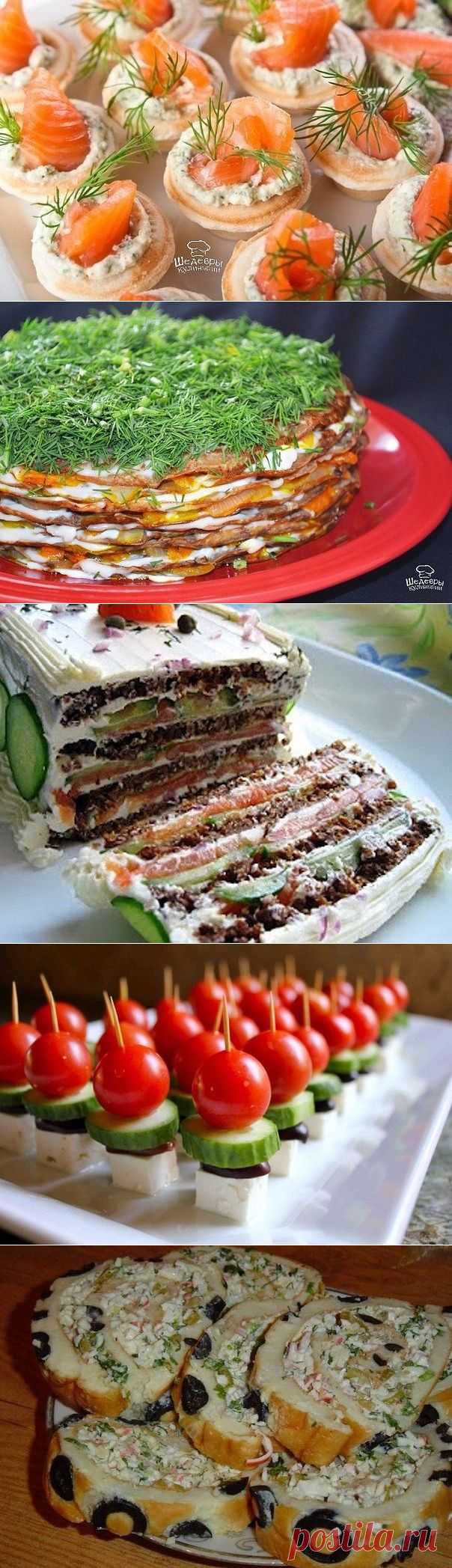 ПРАЗДНИК - ЗАКУСКИ !!! **Икорная сказка - бутер-пирожное, Начинки для тарталеток - 11рецептов, Пикантный -салат из кабачков, Канапе на шпажках -7видов, Рулет-лаваш с креветками, Бутербродный торт, Печеночный торт, Салат-жиле с овощами.