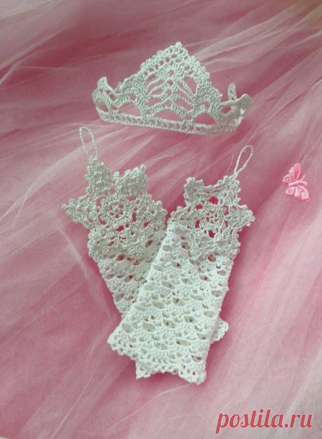 Ажурные митенки и диадема этот комплект я связала доченьке на новогодний утренник. Снежная Королева была самая очаровательная))